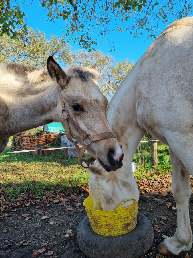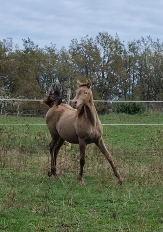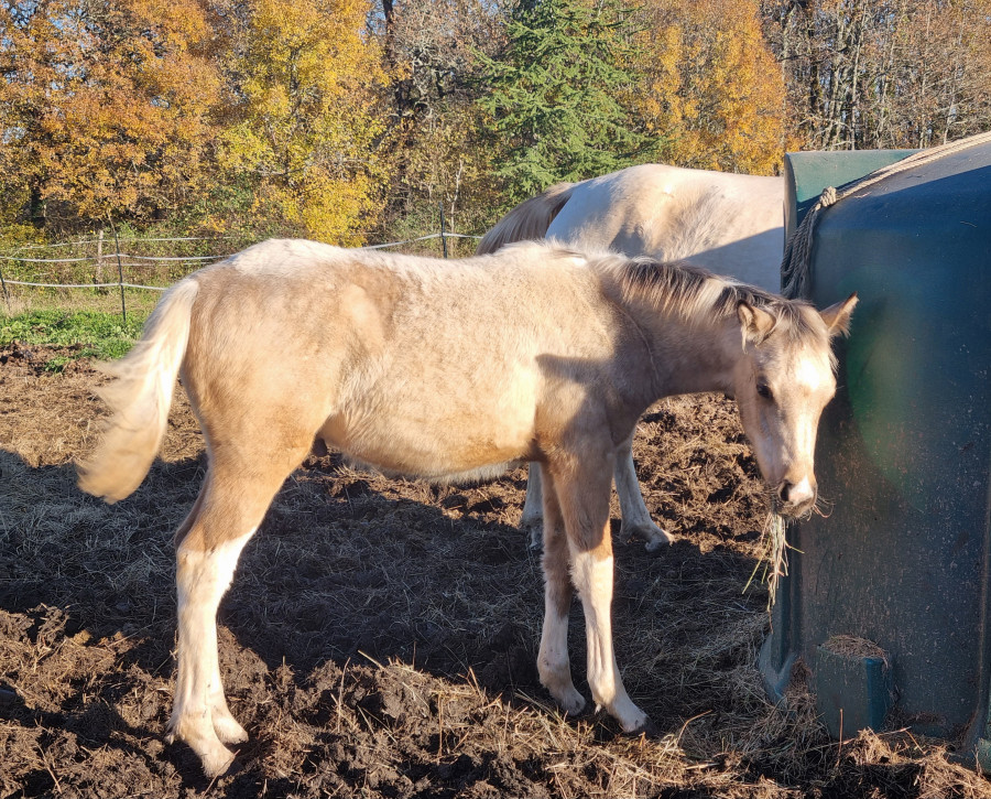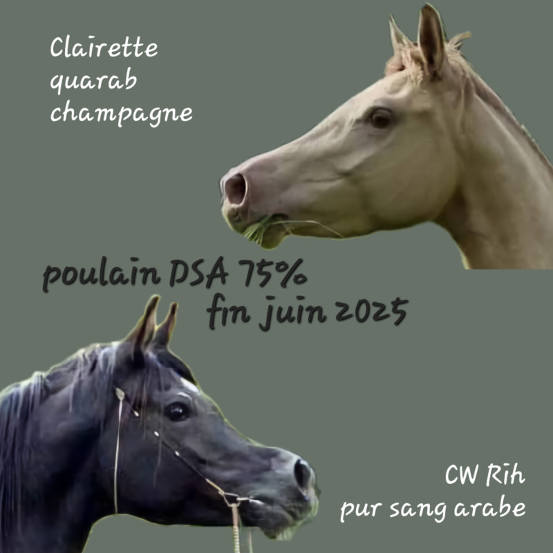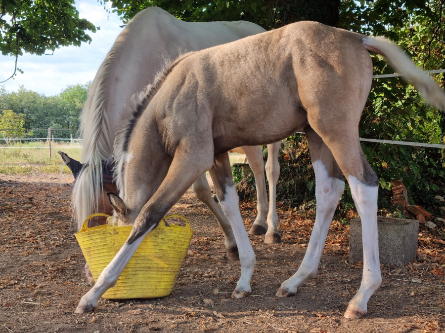 Le deuxième poulain devrait arriver mi-juin 2023 : un DSA à 77% de ma jument crème Flanelle et de l’époustouflant Ien’a Coari. Pile ou face pour la couleur, ce sera crème comme maman ou palo comme papa.