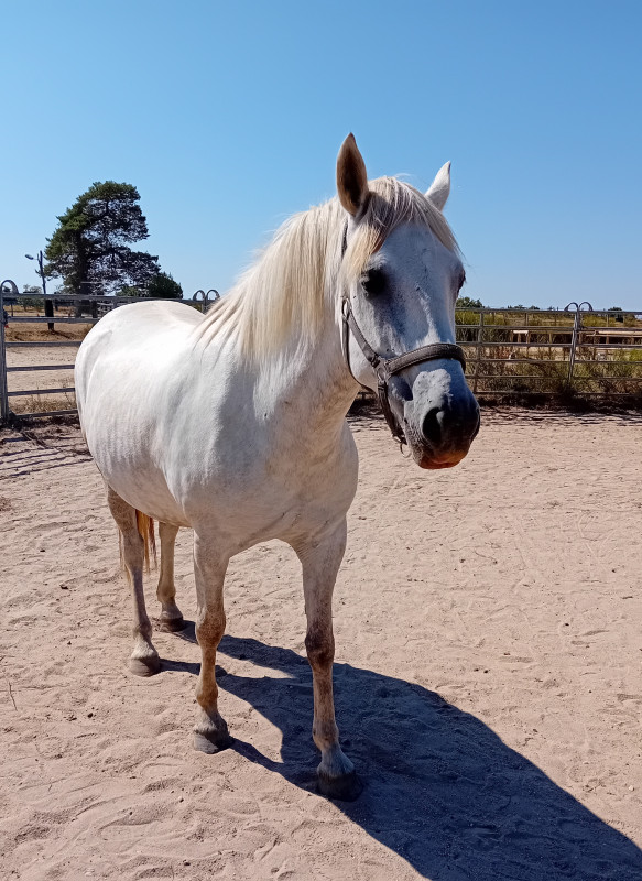 En attendant elle n'était pas complètement seule. Il y a le poney mascotte du club qui vit en liberté