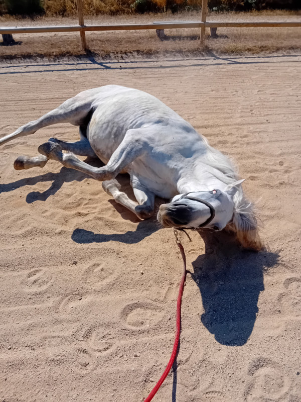 Après petit tour du domaine. Je lui ai montré les deux carrières (elle en a testé une pour se rouler) et un tour de la petite piste, puis le rond de longe.