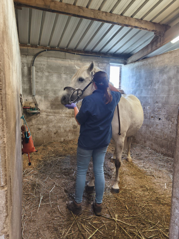 phiphie Pour ce qui est des soins, quels qu'ils soient elle a toujours été au top. Depuis que je la connais c'est une jument très proche de l'humain, qui fait totalement confiance et demande des bisous à tout le monde (y compris le piéton croisé en balade....ce qui peut surprendre le dit-piéton )