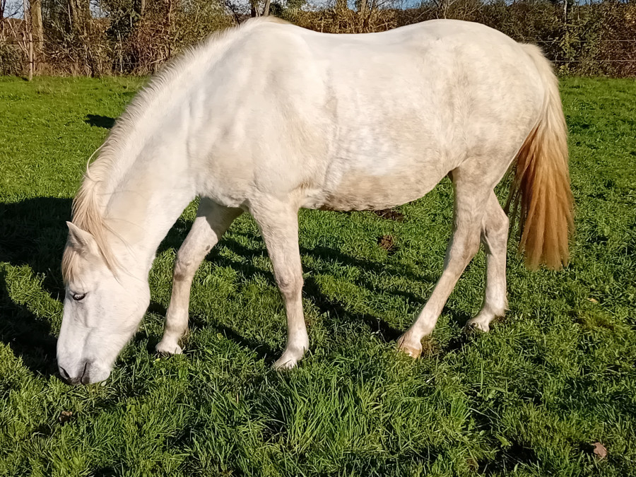 Et cela c'est fait, un poney DSA (mon avatar) acheté à 5 ans, mort à 24 ans. Je n'ai jamais pris de cours avec lui (erreur ) mais j'ai fait de l'extérieur dans tous les sens, un peu de TREC au début et même 9 jours de rando en solo, juste lui et moi. Un superbe souvenir.