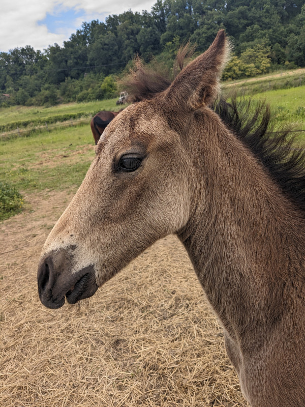 Sinon, ils voulaient absolument le noter bai... C'est juste impossible, il y a aucun doute avec un papa perlino : il est isabelle !