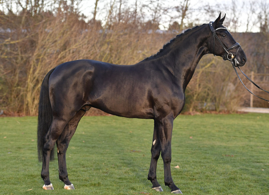 C'est une hanovrienne noire (1m83/750 kilos) de 16 ans. Elle ira à Benicio hanovrien (1m71). Le poulain pourra être alezan, noir, ou bai (