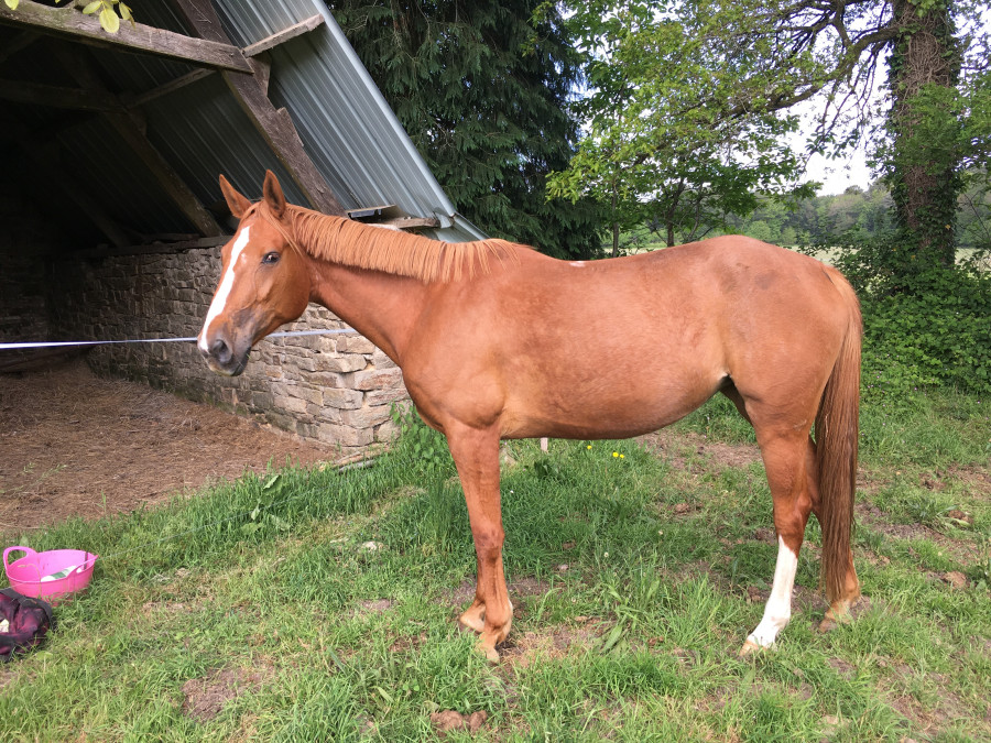 Aïko, hongre de 16 ans alezan, 1m80, SBS, mon maître d'école, exceptionnel, arrivé en février 2018 - reste a la maison
