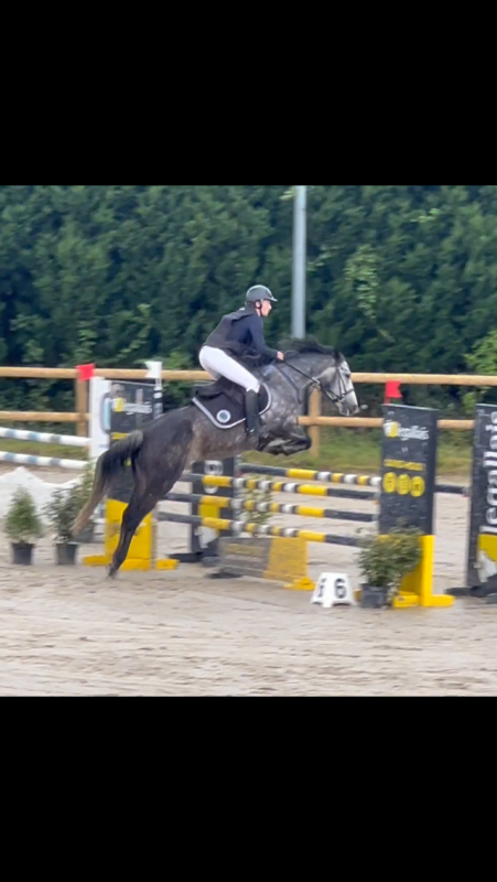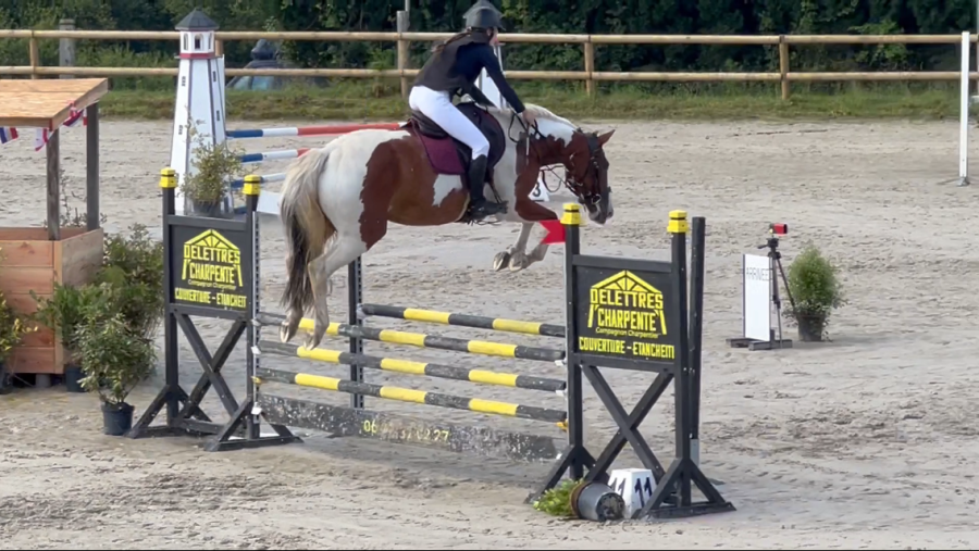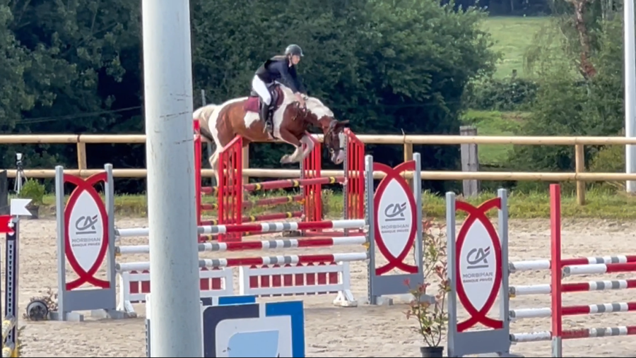 J'ai fait l'erreur de ne pas faire passer de barres a Hebrell les 10 jours précédent le concours, et elle s'est fort perchée, sautant en cloche, le nez sous les sabots. A ne pas refaire ! Elle sort SF de la prépa 1m, évidement elle ne risquait pas de toucher une barre.