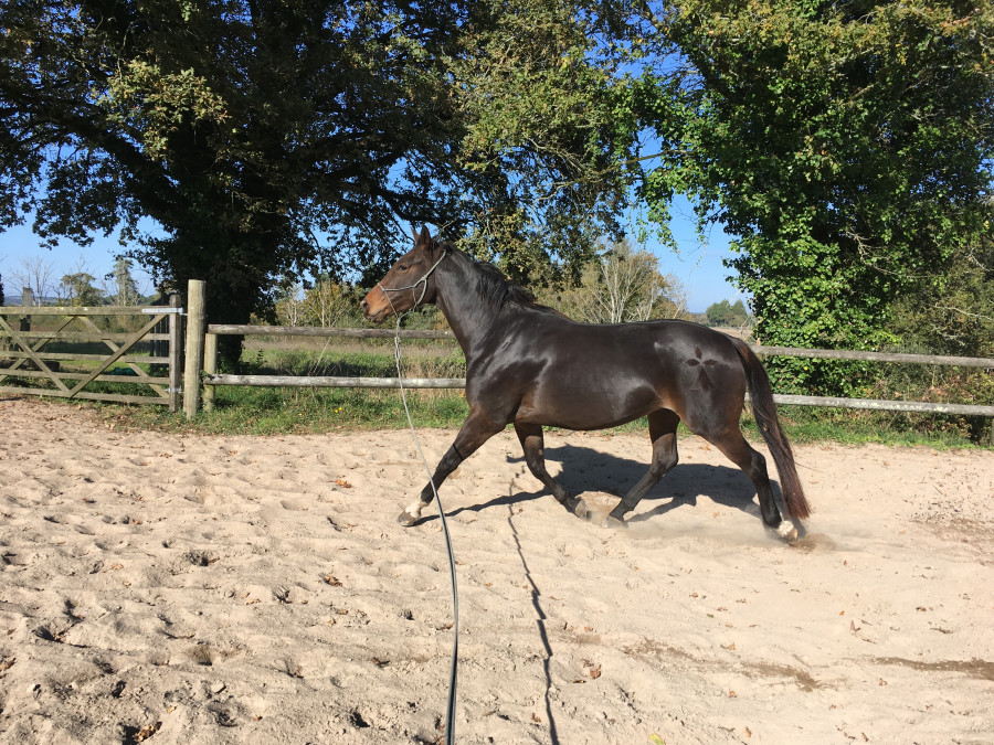 Lovely est mise aux 3 allures, et va en balade sans soucis. Ultra facile et gentille, j'avais prévu de la mettre a vendre. Mais je lui ai proposé de passer une petite croix en longe pour la première fois, et la miss a un super coup de saut. Je ne m'y attendais pas avec son physique atypique
