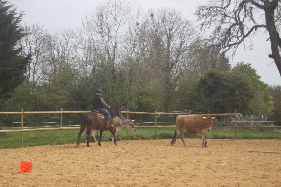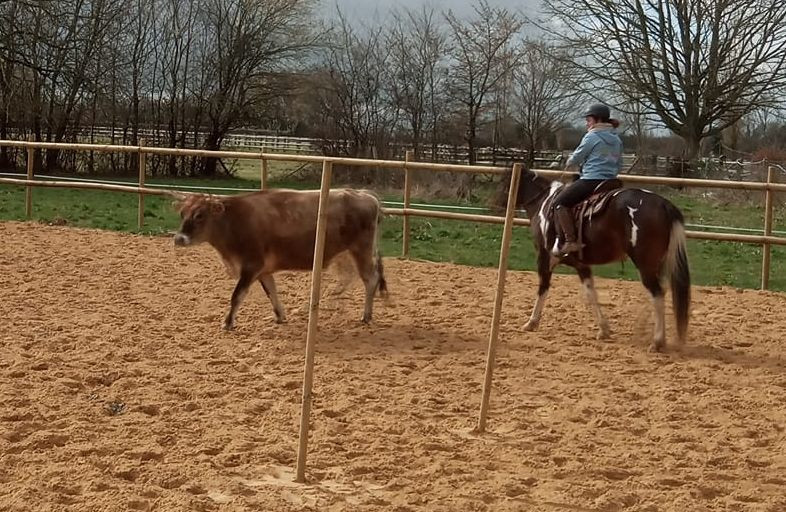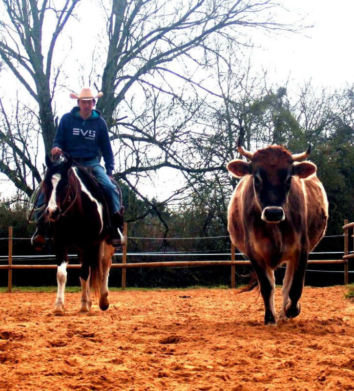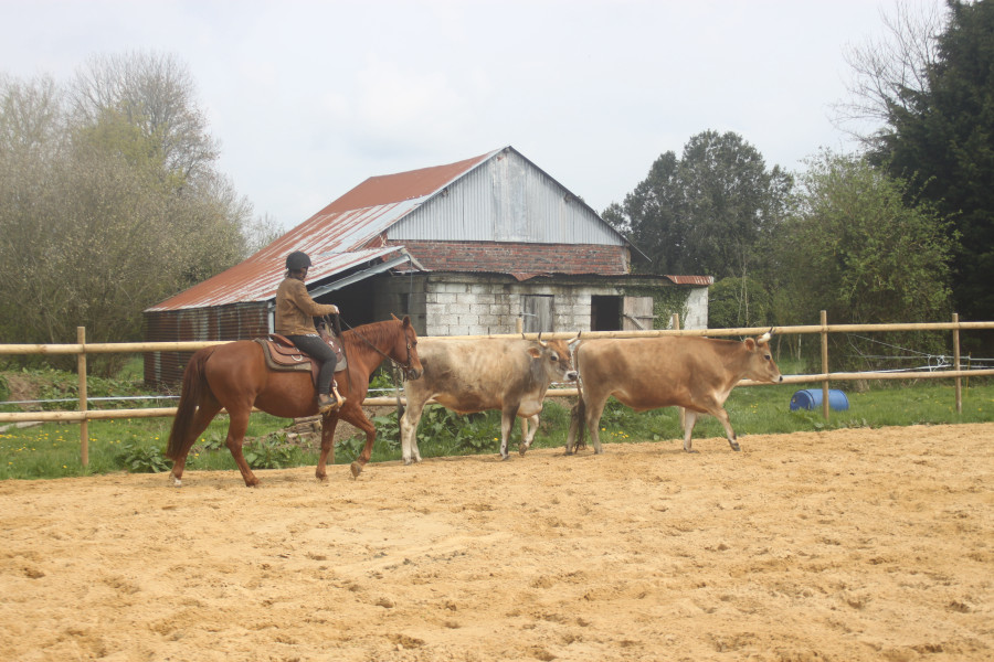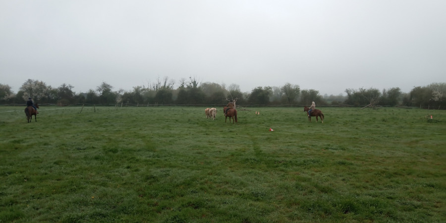 Après plusieurs mois de travaux (non finis), voilà que la moitié des surfaces sont divisées en pâturage tournant dynamique pour accueillir les pensions équines. La carrière est opérationnelle, le horse park façon mountain trail s'étoffe : waterbox, passerelle, troncs... et les chevaux s'entraine au lasso, au cutting et bientôt sur du bétail.