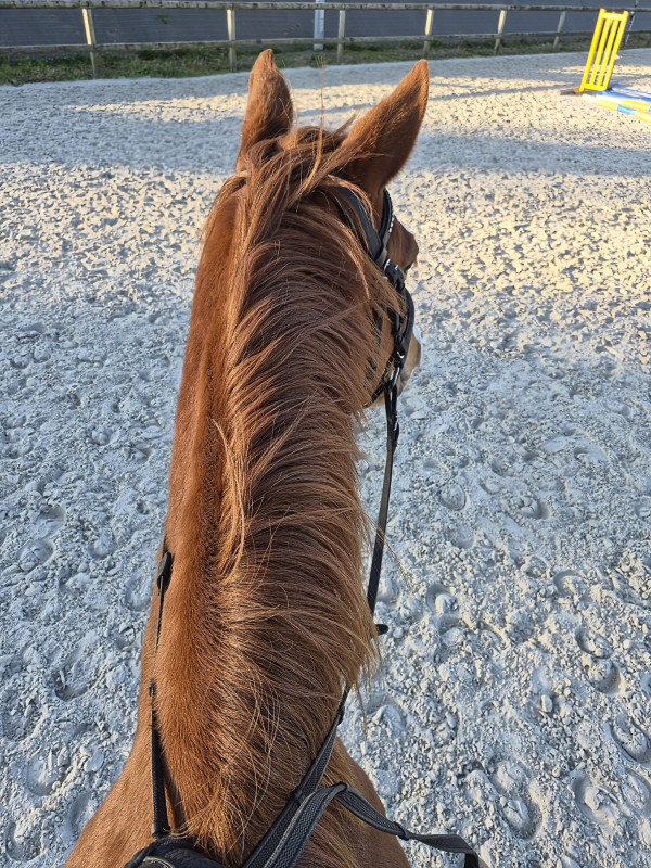 Et on a changé le licol, il est en cob. Je garde le poney pour le pansage car c'est plus ajusté mais dans deux semaines ce sera trop petit je pense.