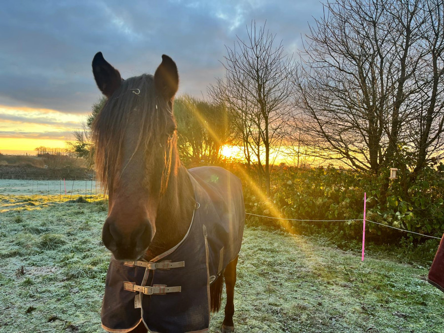 Plus que 0,5 ml de relaquine hier, en carriere avec d'autres chevaux, 5°c adorable, même quand ils ont sauté. Au bout de 30min un petit poney s'est mis aussi à enchaîner à toute vitesse et clairement il avait envie aussi de bouger, j'ai eu un petit bond en avant et il chauffait peu mais il est resté aux ordres jusqu'à 45min même si c'est long. Dans 8j on commence le trot.