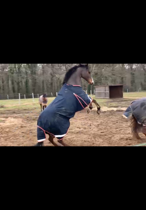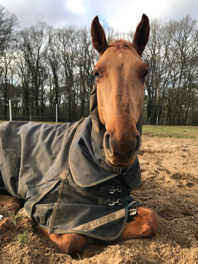 Je suis désolée je n’ai pas donné trop de nouvelles dernièrement mais je vous suis avec application. Cartoon est en grande forme, il a repris du poids et de l’énergie après son vermifuge + gastricalm par contre il continue à être relou au sanglage donc je ne sais pas si c’est vraiment lié à l’estomac … au travail je me force à le monter sans stick et sans éperon, et surtout sans appel de langue, pour m’obliger à mettre des jambes et à le faire se pousser au lieu qu’il aille vite. C’est pas facile pour moi mais lui est beaucoup mieux comme ça je suis ravie.