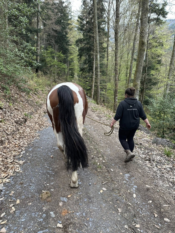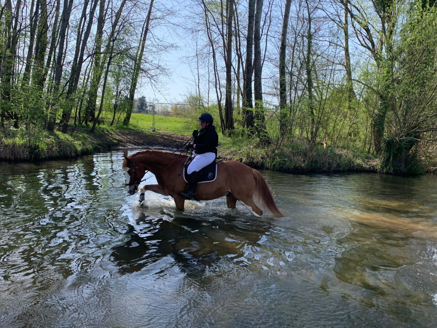 Elle a bien compris qu'on pourra galoper aussi haha. Et malgré sa petite taille (enfin 1m61 environ), je crois vraiment qu'elle va avoir un super galop pour crosser (amplitude et élasticité) vu ce qu'elle montre à 4 ans. Par contre vs mes deux autres elle n'a clairement pas la même force, genre pas de frappe devant l'obstacle, mais elle est assez souple et agile pour mettre un petit coup de dos pour franchir. Après il parait que le papier est tardif, on verra bien, puis encore une fois pour ce que je veux faire ça devrait aller.