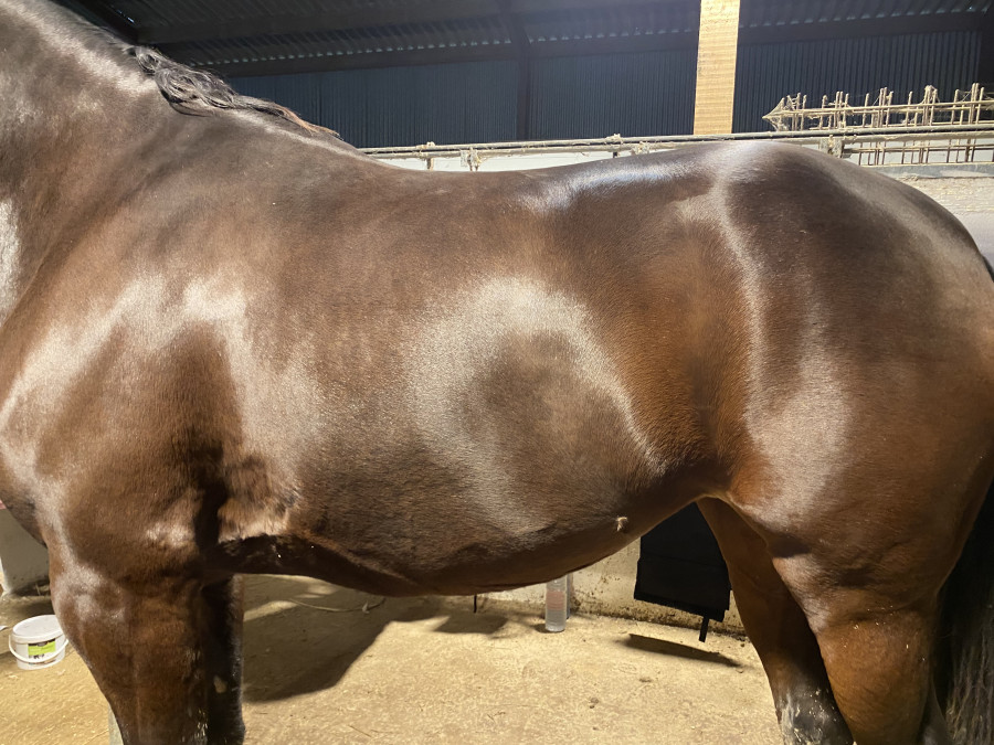 Mais il ya 2 questions complémentaires : elle a un passage de sangle etroit à quel point ? Parce que sur les chevaux de sport c'est quand même pas super étroit en général (si tu a une photo de flamme de profil a poil).