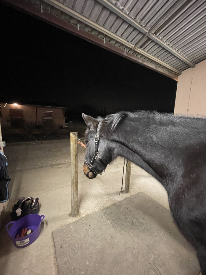 Ensuite visite de la deuxième pension, je suis moyen convaincue, la nana a l'air bien, y'a des belles pâtures une grande aire de pansage couverte, une sellerie qui ferme à clé, des accès relativement facile aux chemins de balades, mais la carrière est dégueulasse archi en pente et vraiment pas top qualité.