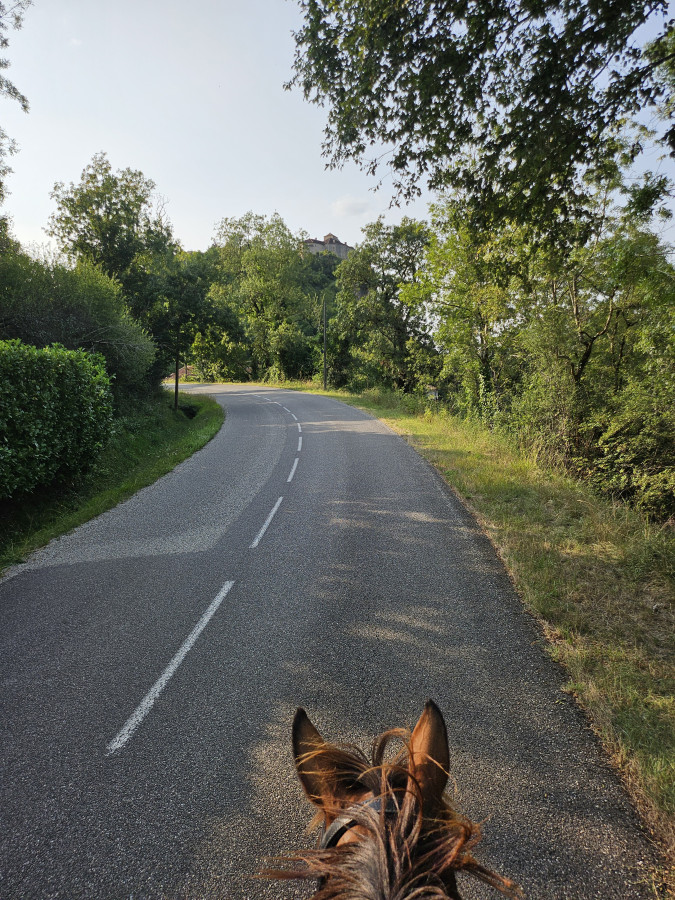 En marchant le GR c'est hardos surtout la première montée car ça monte même pas en lacet tu te tape 250 de dénivelé positif et en plus le sol est moyen faut regarder où tu mets les pieds, mais après c'est faisable. La partie compliqué avec les chevaux ceux sont les rochers ronds car là c'était sec et déjà compliqué mais si ça avait été humide je ne te raconte pas. Et puis moi j'y allais confiante car ça fait parti du tour du Tarn à cheval. D'entrée on est tombé sur une passerelle, ben non quoi, heureusement il y avait possibilité de contourner par un chemin mais bon pareil les chevaux je ne les voit pas trop passé sur ça, même ceux habitués à passer partout car passerelle en bois de bien 25m de long sur 1m50 de large et encore et avec des rambardes hauteur pietons .... Vraiment un truc pour piétons.