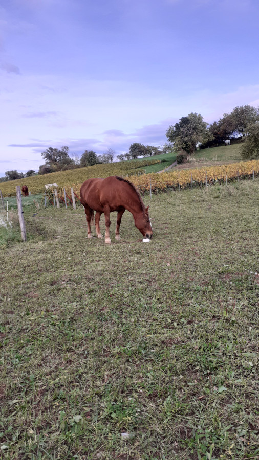 Je voulais voir comment était ma juju dans ce genre de configuration, mais je n'ai pas eu de surprises : pas complètement sereine d'être toute seule, mais ok tant que je suis devant et qu'elle peut me suivre. Je suis bien contente, pour une fois on a pris le temps de vivre (malgré deux averses ). Parce que ma coloc de pré est sympa, mais quand il s'agit d'aller se balader avec les chevaux, elle a zéro tolérance pour leur manque d'entrain (ils se traînent, ça la gonfle, donc elle zappe les pause pour brouter "parce qu'ils ne le méritent pas", donc fatalement ils ont encore moins envie de sortir la fois d'après ... x) ). J'ai beau en avoir conscience, ça déteint quand même sur moi et j'ai parfois tendance à être un peu injuste ou brusque vis-à-vis de ma pauvre louloute.