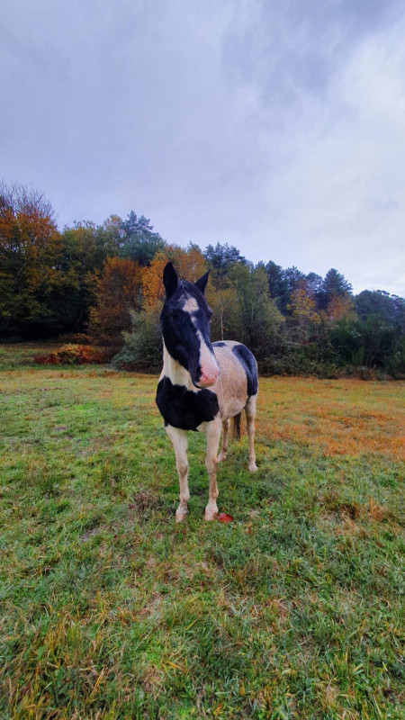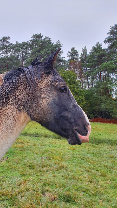 J'ai préféré ne pas lui imposer ça, j'ai bien vu que tenter de la sortir allait l'emm**der au plus haut point, et qu'elle était déjà assez occupée à lutter contre pluie et vent, donc on a juste fait des tours et gratouilles dans le pré et on a profité des belles couleurs de l'automne