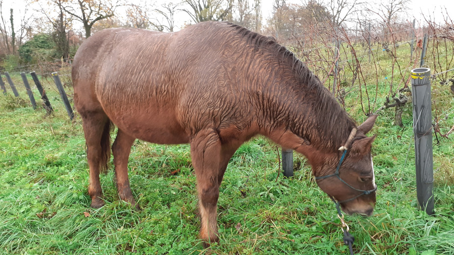 Elle semblait avoir faim ou en manque d'herbe verte. Mais on a quand même fait le tour des vignes.