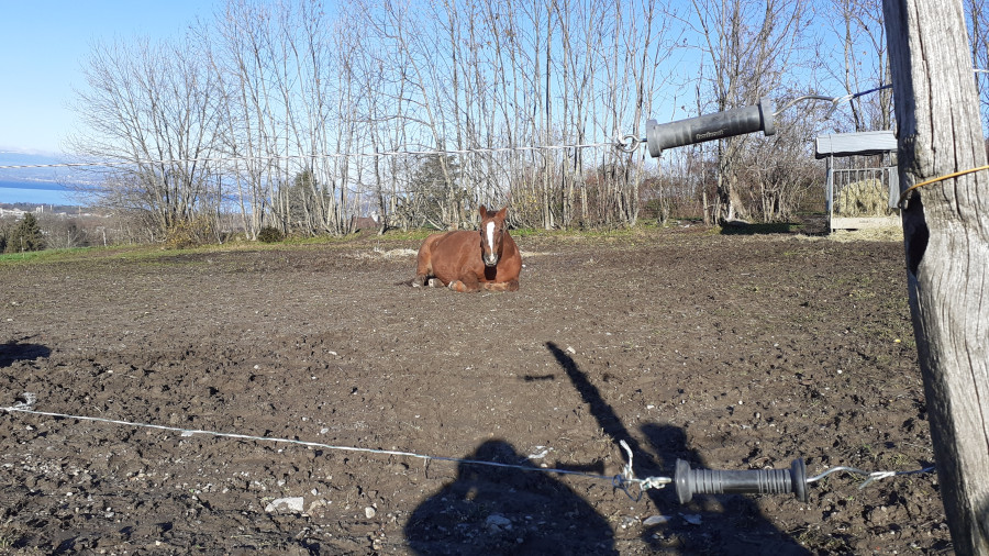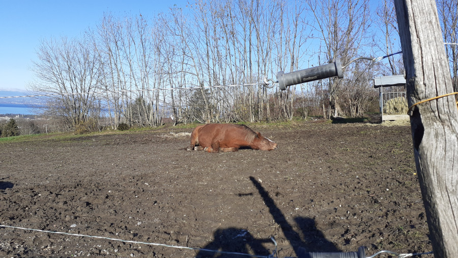 Il y a un monsieur qui promenait son chien (et que je vois de temps en temps) qui m'a demandé si c'était normal qu'il y avait un cheval de couché dans le parc.