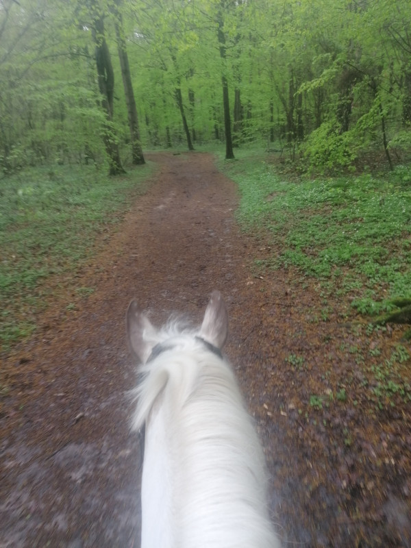 Aujourd'hui petite balade à pied avec mes 2 juments entre deux averses, 2km et des poussières.