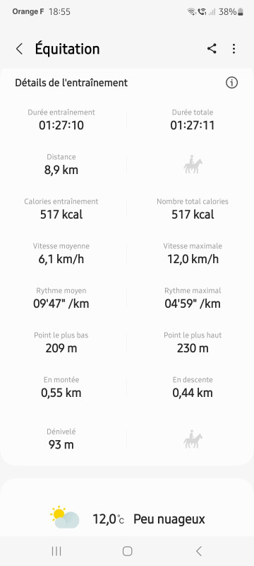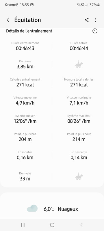16km avec time je lui ai remis son hackamors pour voir si elle s excitait moins et arrivait à se calmer plus vite.