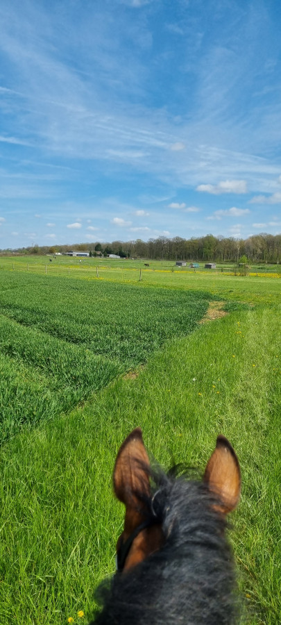Aujourd'hui, j'étais déter, mis la selle et hop direct partis en extérieur, au final mon cheval est vraiment top parce qu'il a fait ça comme quand on était dans l'autre pension...