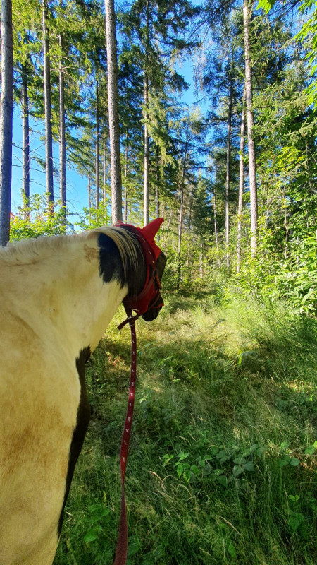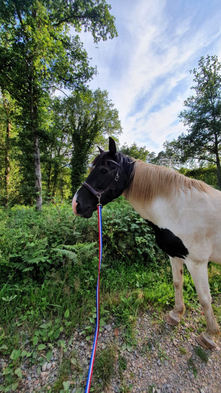 Donc on a fait 10 km j'ai marché principalement, j'avais pas pris ma bombe, la pluie menaçait mais finalement il a fait bon et frais. On a vu de superbes paysages de forêt, campagne, le village est super étendu j'ai eu du mal à trouver le stade... Pas trop d'insectes ni de dénivelés, Lotus a mangé plein de plantes c'était chouette ! Puis j'ai vu qu'il y avait quelques beaux chemins pour faire des allures. Il va falloir revenir.