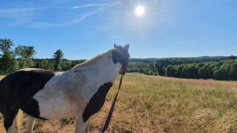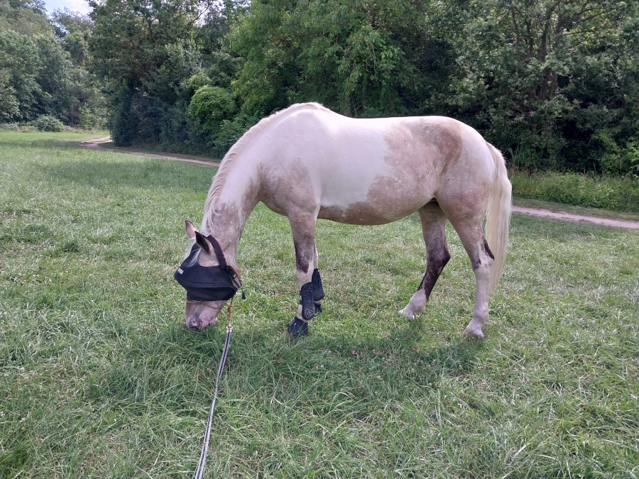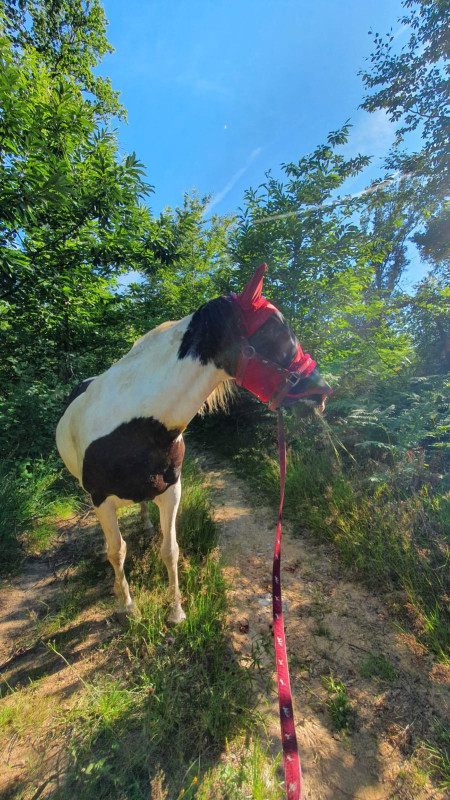Donc traitement anti inflammatoire, parc sans herbe avec foin et copains . Reprise en douceur des balades ( à pieds bien sur ).