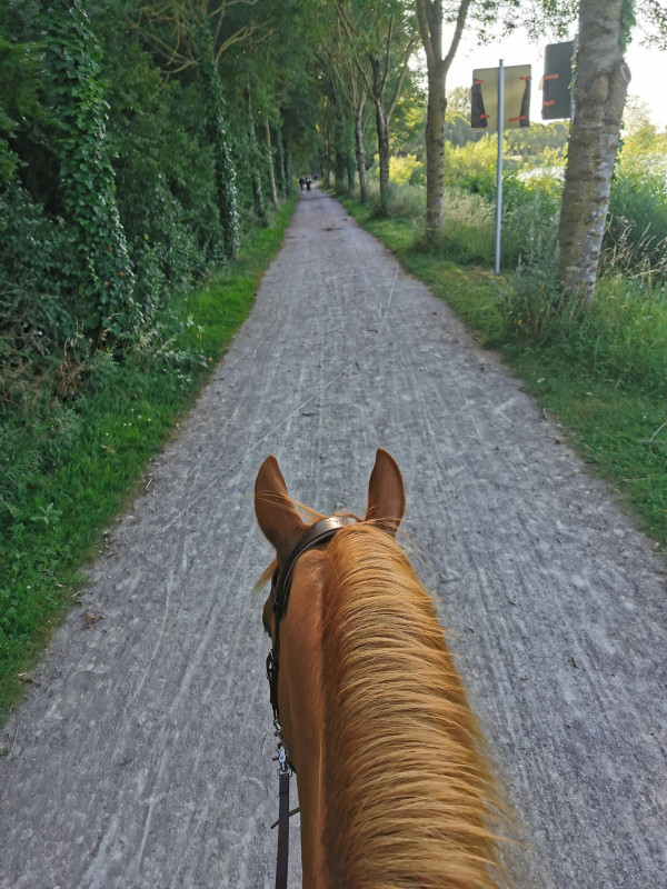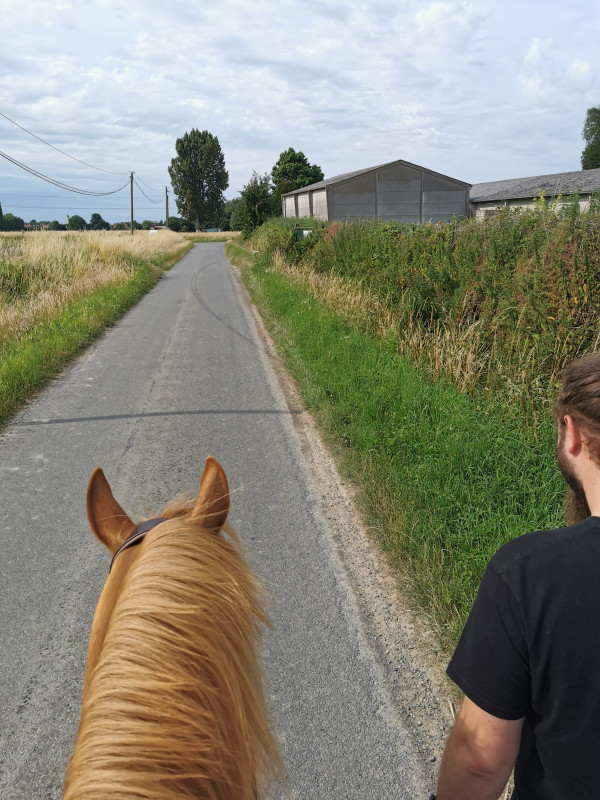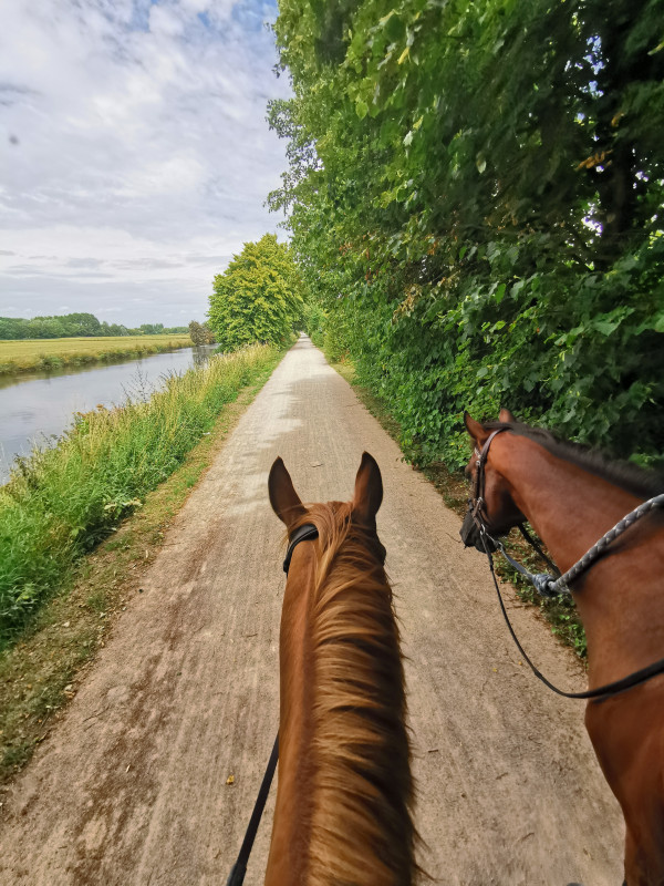 Sortie jusqu'à la Deule avec 2 propriétaires de l'écurie et mon homme qui a suivi à pieds.