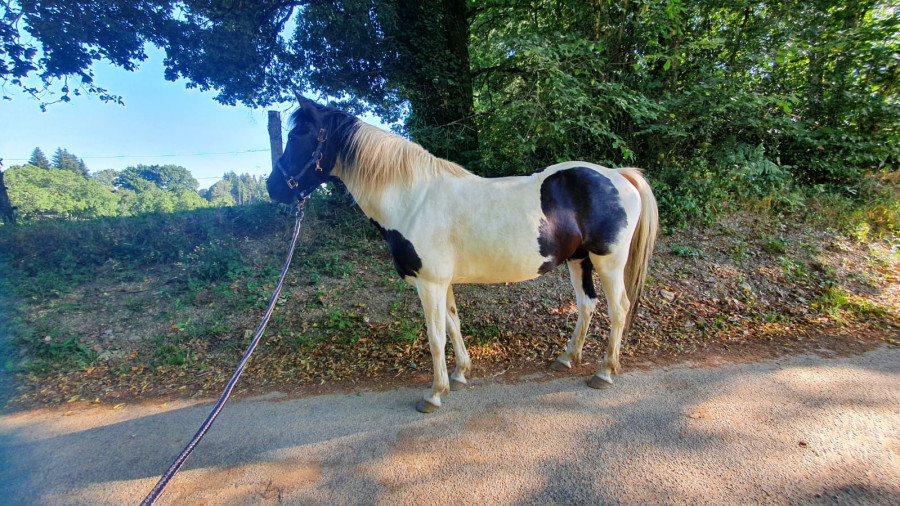 Pendant ce temps Potrillo était furax d'être séparé de nous, et embêté par les mouches, il a fait un peu de trots,d e galop et de roulades. Et un passant m'a demandé s'il était en coliques. Puis il venait à la porte, hennissant et encensant... et il recommence !