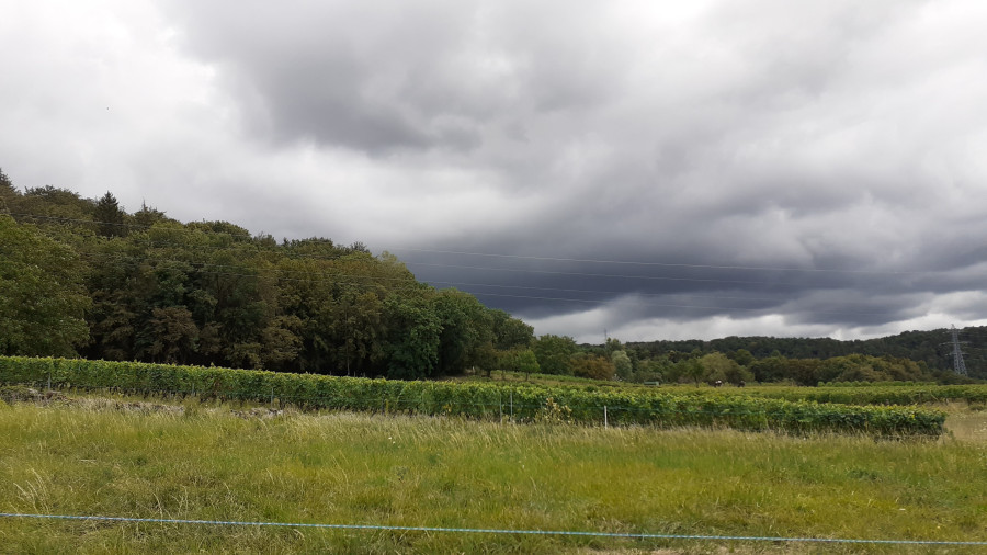 ensuite j'ai nourri Oskar, retiré quelques séneçons, et le temps qu'il fasse sa vaisselle, il s'est remis à pleuvoir, retour maison vite fait sous une pluie battante.
