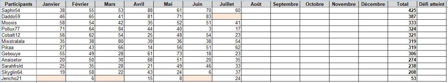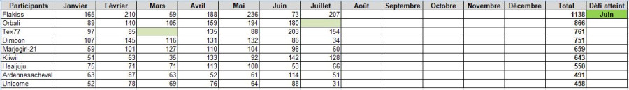 Bravo à toutes pour vos sorties et profitez bien du mois d'août ^^