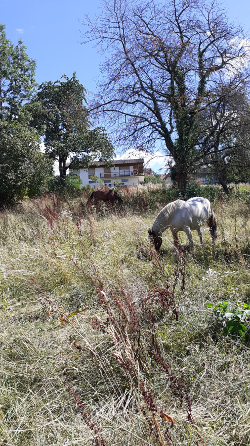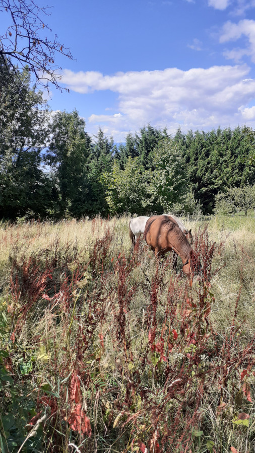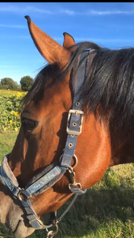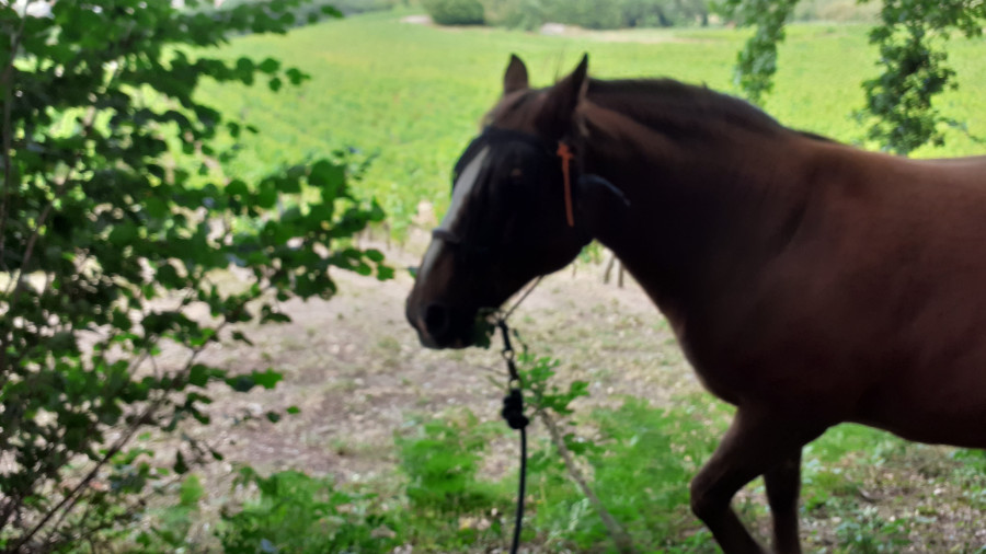 Après une semaine où Vainqueur a été pas mal stressé par le changement de pension, dès qu`on s`éloignait des copains, il commence à se poser. Hier il a appelé une seule fois les autres en arrivant à l`aire de pansage, et après tout calme. Ça fait plaisir de le retrouver comme ça. On a donc fait une petite balade en main, première petite sortie seuls dans cette pension