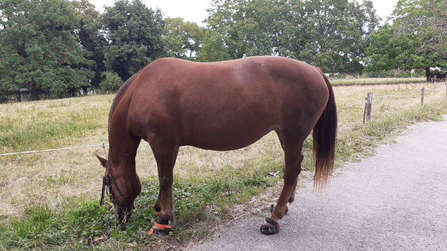 Puis j'avais pris un sac de paille pour Cisko et on a discuté avec sa proprio, elle pare la jument d'une copine qui est capricieuse et la "patronne" laisse faire... Du coup 1h30 pour faire les antérieurs et encore elle a menacé de se faire latter...