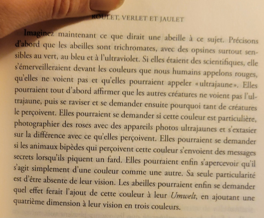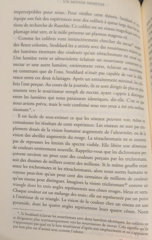 Je remonte ce post car je m'éclate avec le dernier bouquin en date acheté (y'a longtemps mais je ne lis sérieusement que maintenant) Un monde immense - Comment les animaux perçoivent le monde de Ed Yong.