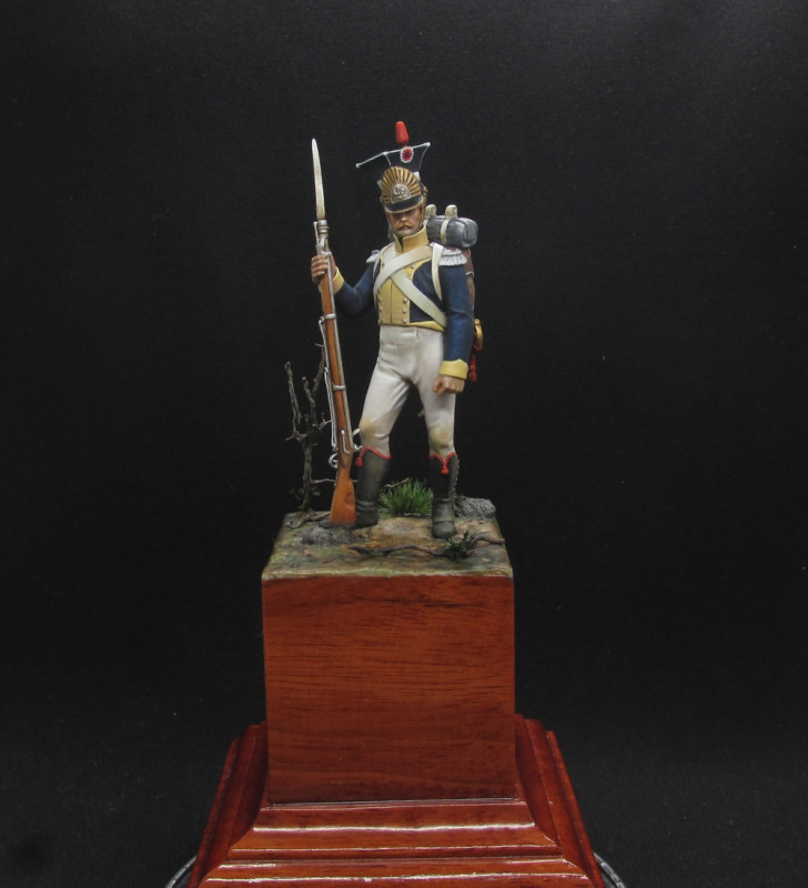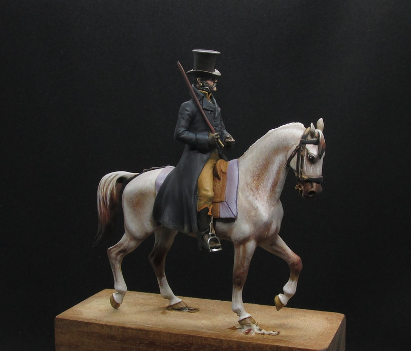 Pour un 54 mm, piéton, comme celui ci-après, je mets une vingtaine d'heure (peut-être un peu plus compte tenu de la préapration, du montage, du décor).