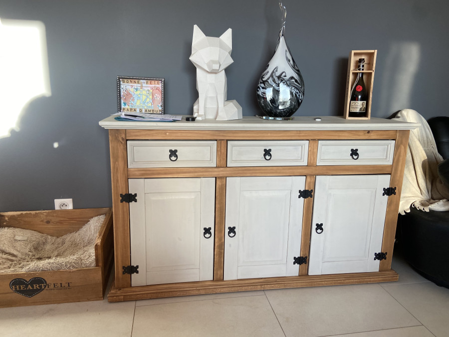 Voici donc la pièce maîtresse de la déco de notre salle a manger, style bohème pour être en harmonie avec le bois et la pierre de la maison.