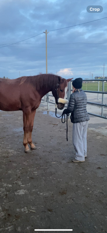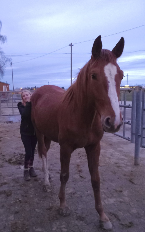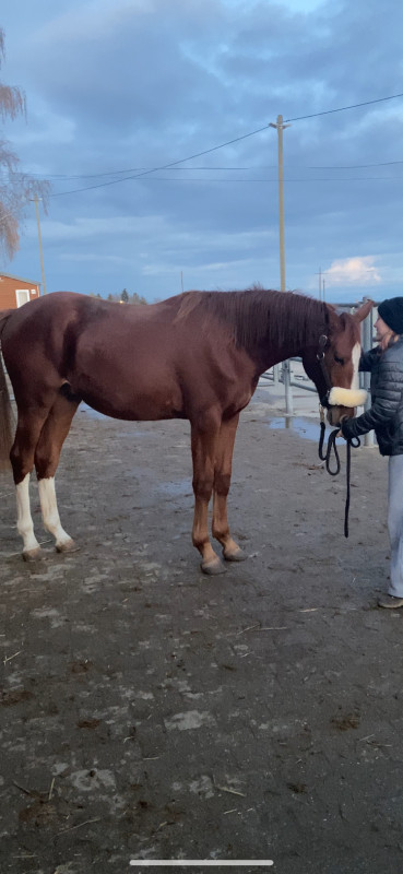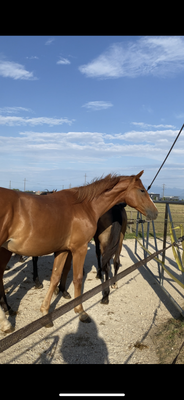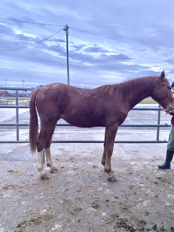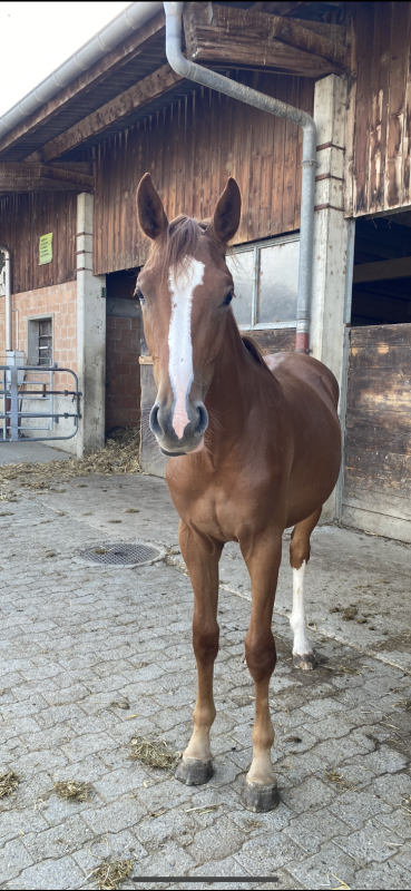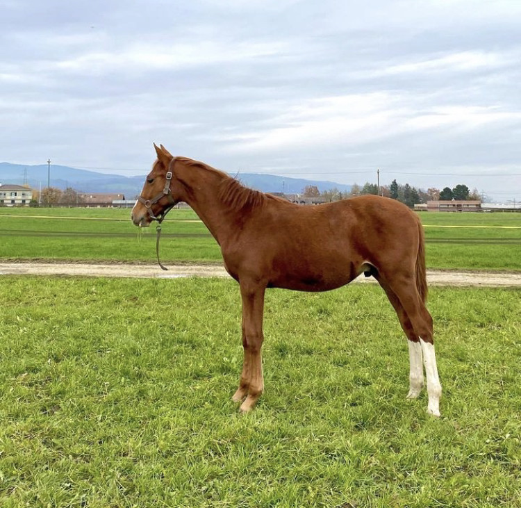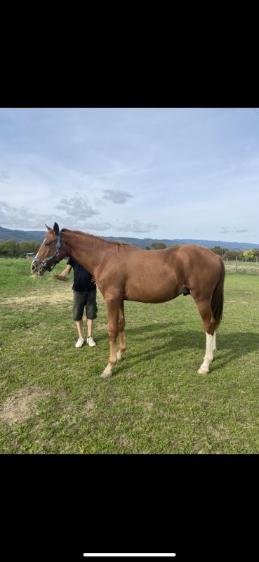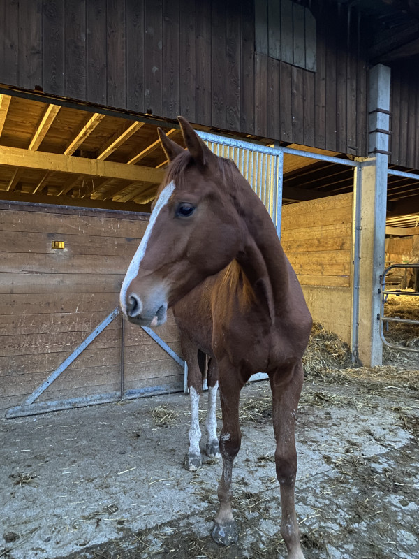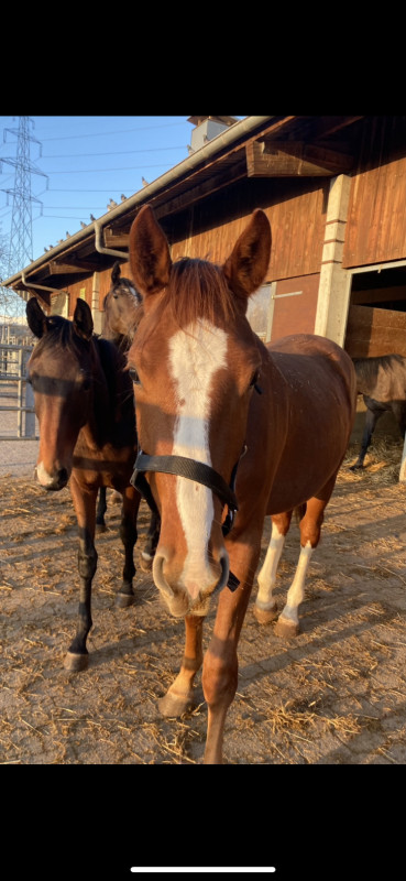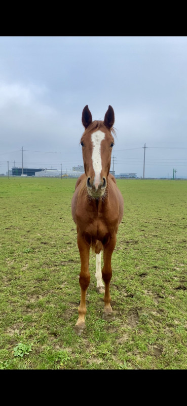 C'est un alezan aux grandes chausettes, d'où le titre A terme il devrait faire dans les 170 cm, je vous redirais dans 4 ans lol