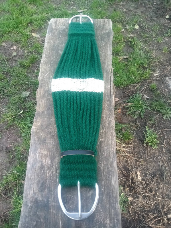 P.S. pour la question de plus haut "quelle sangle prendre": j'étais grande fan des sangles ProfChoice en néoprène, mais vu que le néoprène est certes facile dans l'entretient mais ne laisse pas respirer la peau du cheval, je suis partie sur une sangle en feutre (ce modèle là, fait à la main avec du super feutre produit chez eux, existe en différentes couleurs/combinaisons)