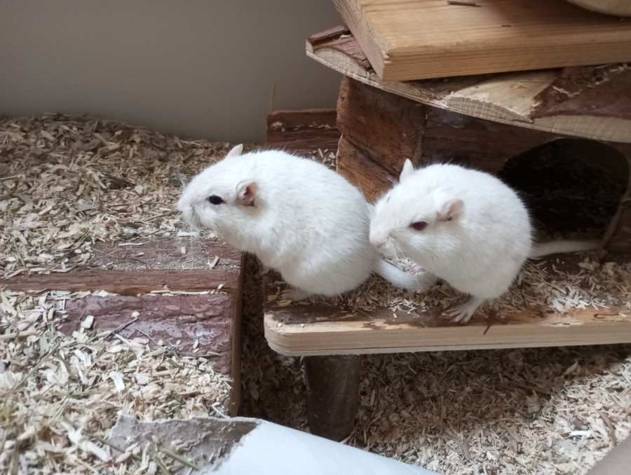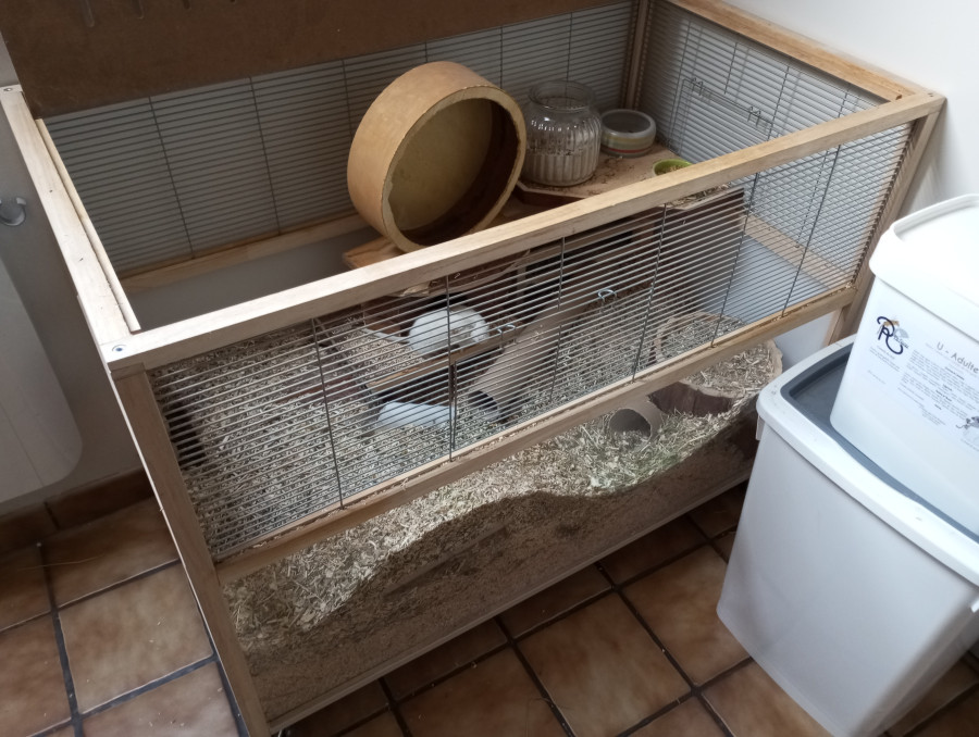 J'ai une cage immense pour elle si c'est trop compliqué en groupe. Et on va lui faire un petit chariot roulant.
