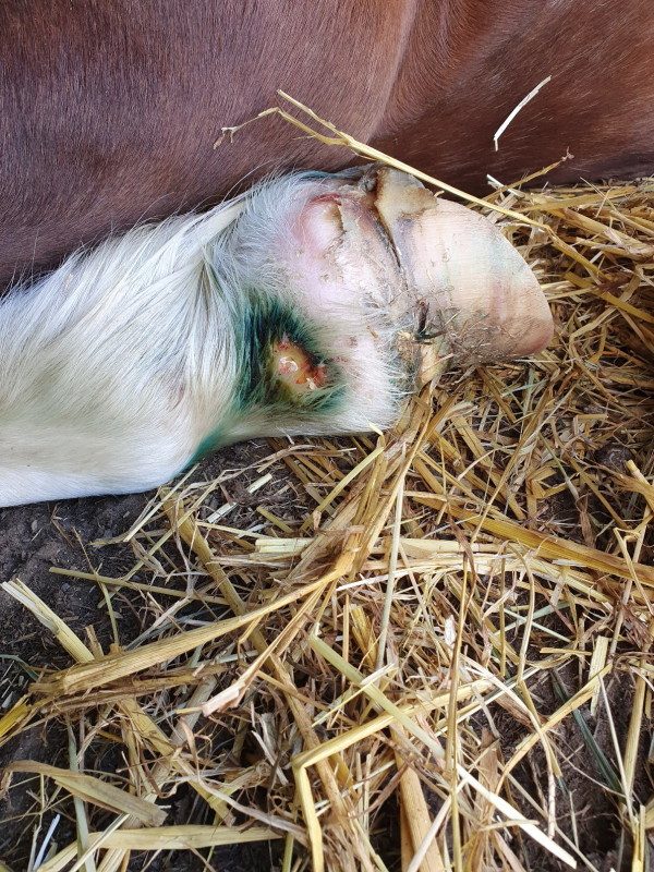 Ensuite, après disparition du pus, on envisage une ablation des tissus nécrosé en espérant que cela suffise à ne pas perdre ce sabot...