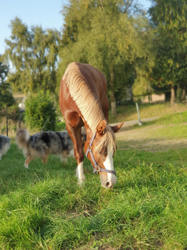 J'ai reçu lundi 4 septembre une jument en provenance du pays de galles. Une pouliniere welsh type cob clairement tres grasse. Échographie pleine mais vu la suite, c'est pas la gestation qui nous préoccupent desormais.