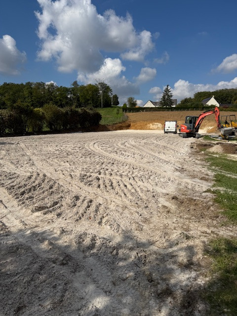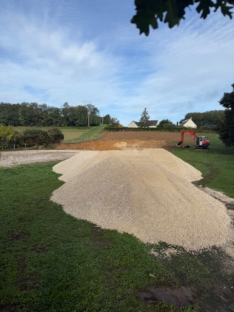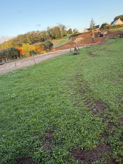 Le gars a tout décaissé les 20m qui manquaient et il a étalé toute la terre dans le haut du pré.