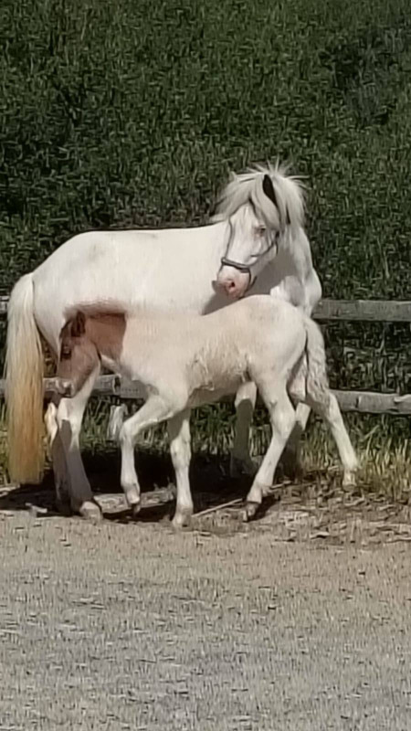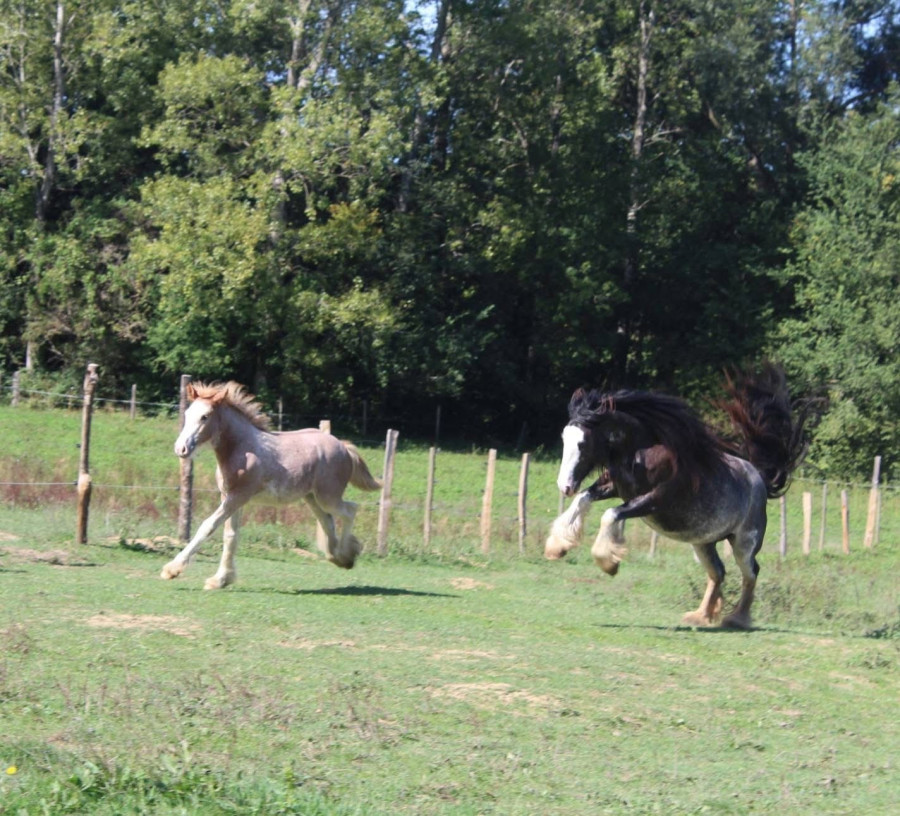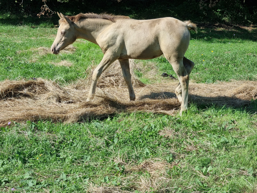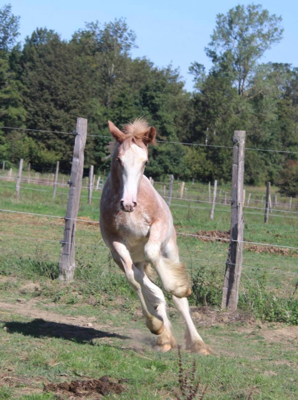 La miss a eu 3 mois et il paraît que c'est l'âge idéal pour juger le modèle, je la trouve vraiment pas mal, assez costaud, une encolure de fou et toujours cette jolie tête raffinée... le caractère bien trempé, comme si elle n'avait pas conscience d'être la naine du groupe... avec moi ça se passe bien, plus de tentative d'intimidation. J'ai enfin eu le temps cette semaine de lui apprendre le licol, en 3 micro séances c'est bon, on l'a mis et enlevé 3 fois aujourd'hui, plus qu'à pratiquer régulièrement. Je sens qu'il vaut mieux lui apprendre les cessions et la marche en main avant qu'elle prenne trop de force, vu l'engin...
