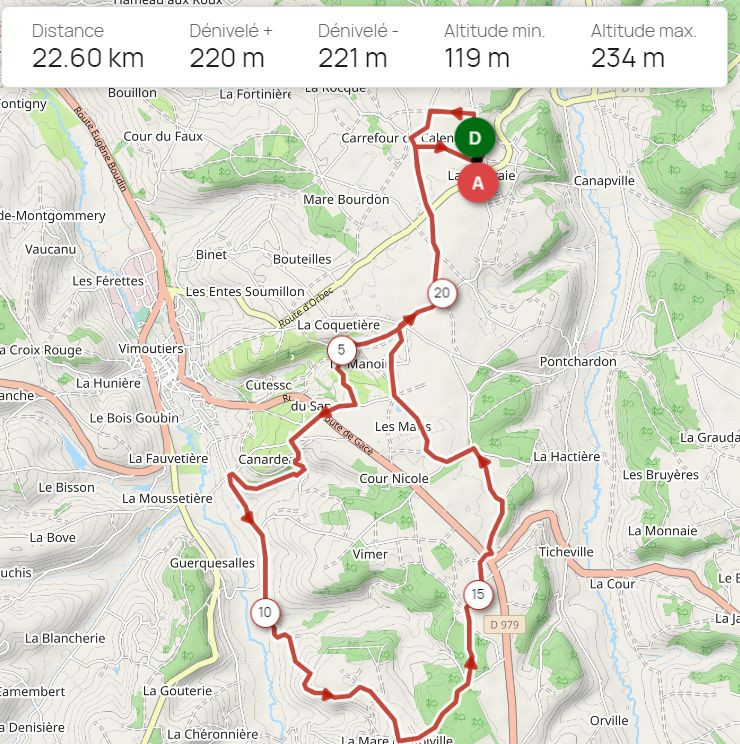 Ce sont les valeurs Dénivelé- (cumul de descente) et Dénivelé+ (cumul de montée) sur la fiche de parcours :