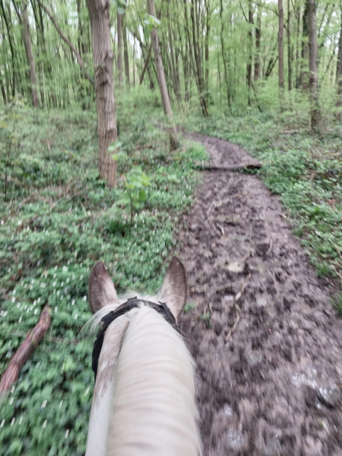 On a fait des phases de galop et de trot sur la piste en stabilisée et du trot en allongeant dans la petite côte en dur. Le reste des terrains est complètement trempé et glissant...