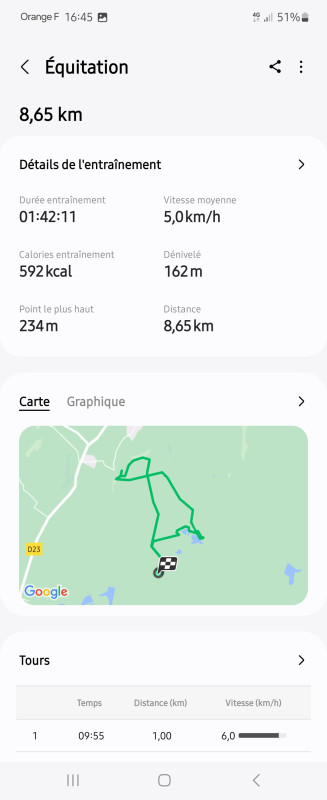 +6.5km ce matin on a fait beaucoup de pas et une allée au trot.