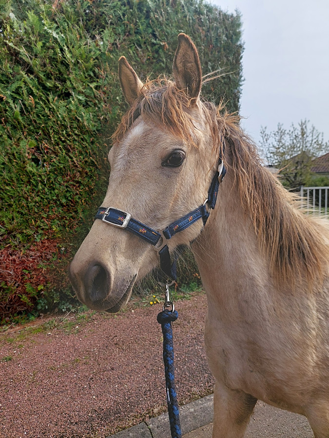 Poney a essayé une fois de prendre le galop mais j'ai dit non et après ça il est resté tranquillement au pas tout sage