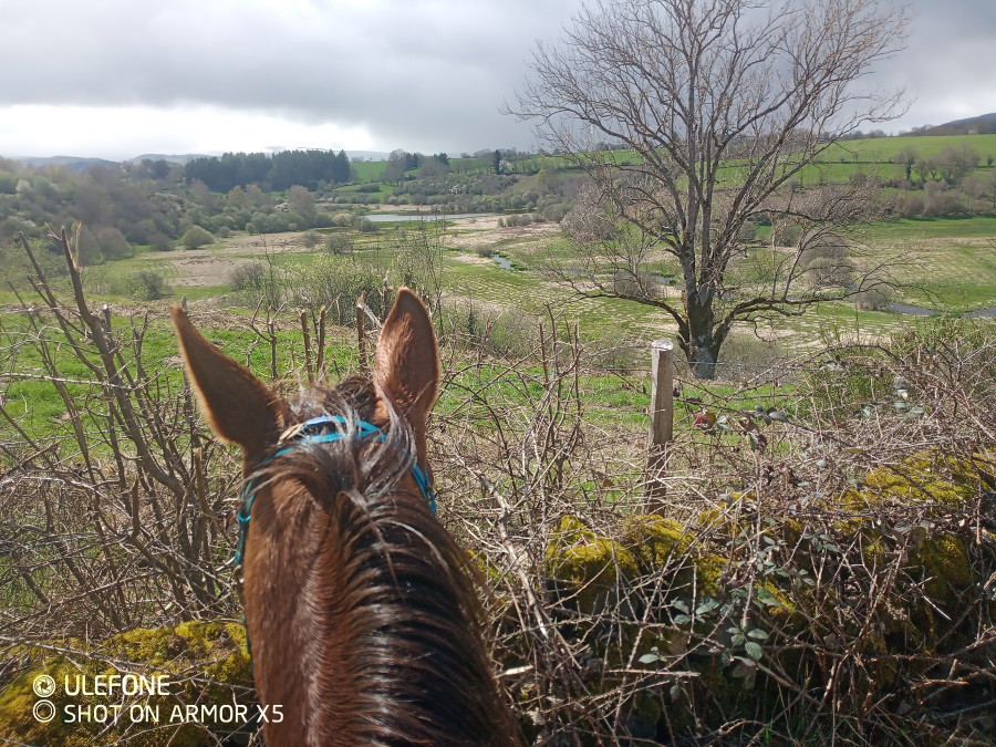 Cette fois ci j'avais le releveur avec alliance sans muserolle pour bosser sur le plat donc j'ai faite la balade rênes longues comme ça me donne beaucoup de frein.