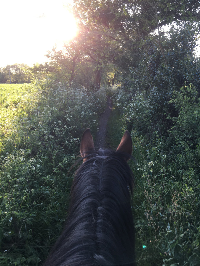 Petite balade après le travail, que ça fait du bien ! Vainqueur marchait d`un bon pas, on a fait plusieurs trots et galops, il avait la forme, ça faisait plaisir à voir. Le retour à l`herbe lui fait le plus grand bien