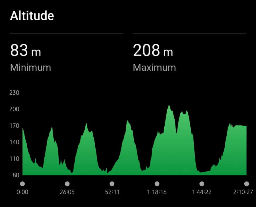 Moi j'ai peu de dénivelé dans le sens où je n'ai pas de grosses montagnes, seulement des petites collines avec a peine 200m d'écart entre le point le plus haut et le plus bas mais je passe ma vie à descendre et remonter sans cesse